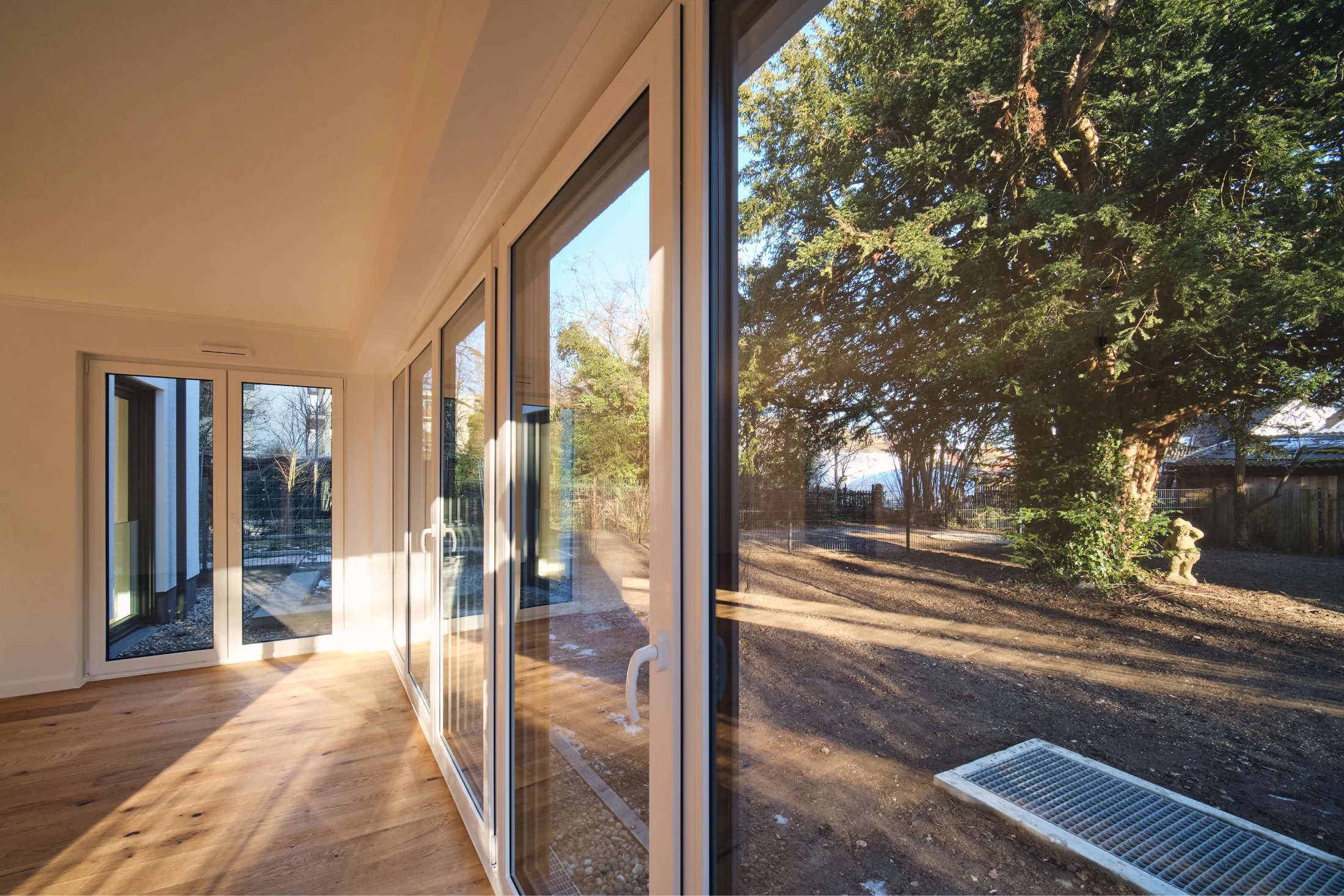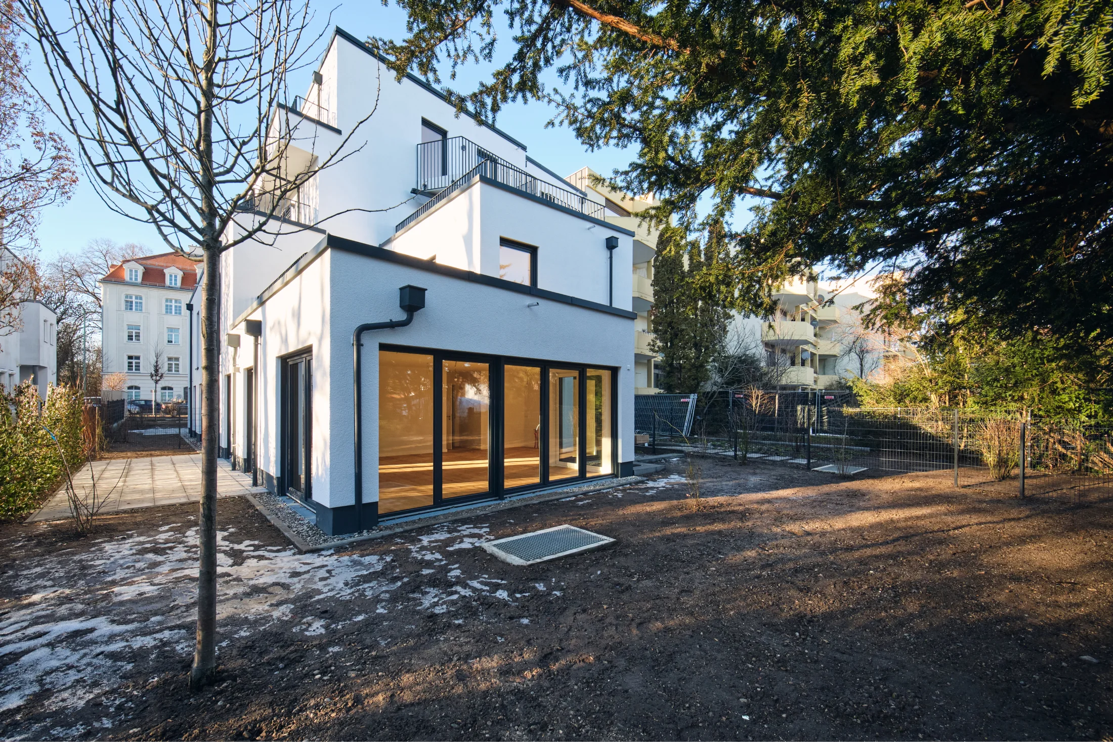 In Pullach im Isartal entsteht ein elegantes Ensemble aus einem KfW40-Neubau und einem hochwertig energetisch sanierten Bestandsgebäude.